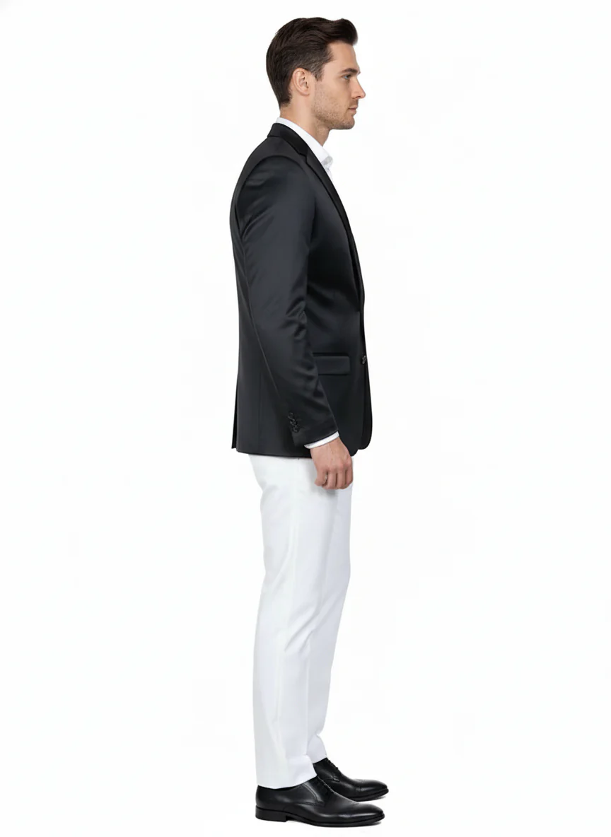This black satin blazer is a versatile must-have for the modern gentleman who values style, comfort, and sophistication.
