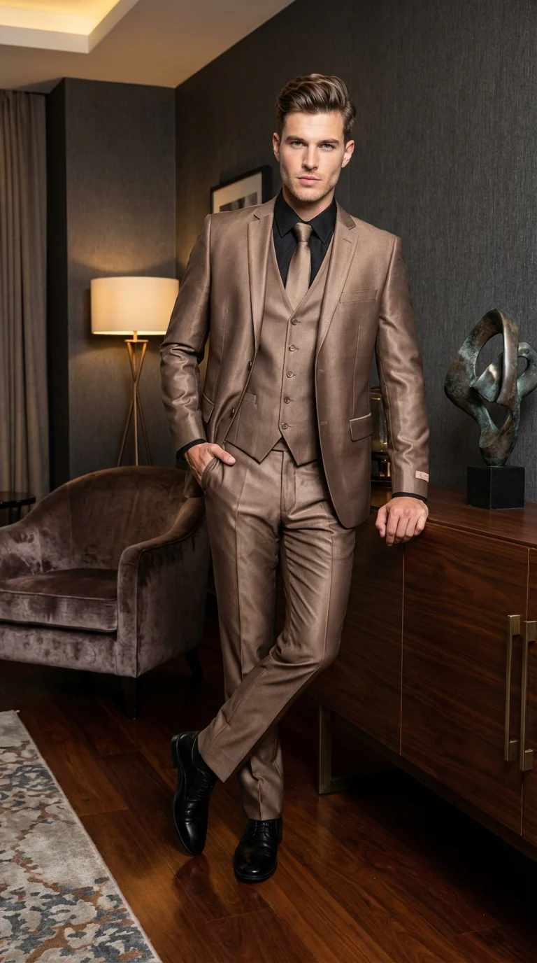 Add this bronze brown 3 piece suit to your collection for a stylish and versatile men’s formal outfit designed for elegance, confidence, and standout event wear.