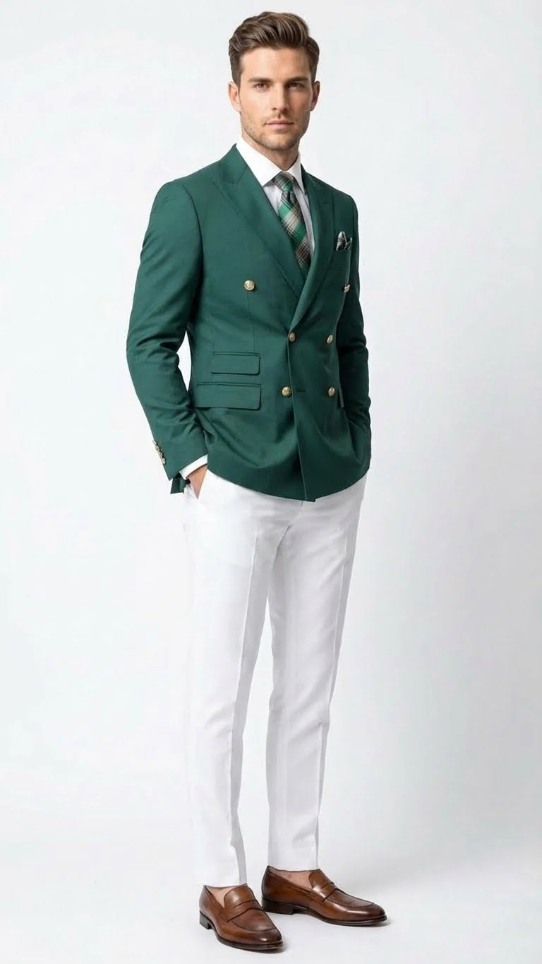 - Men’s dark green double breasted blazer