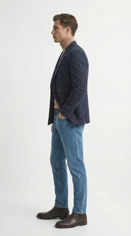 Designed for comfort, durability, and everyday wear, this men’s navy pinstripe double breasted blazer is an essential piece for professionals and style-conscious men. Whether worn for work or refined casual settings, this navy blue blazer jacket for men delivers lasting style and confidence.