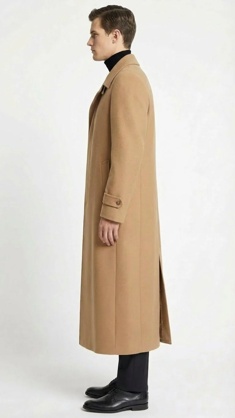 Men’s Full-Length Camel Overcoat – Classic Long Microfiber-Blend Coat for Winter and Formal Wear Maxi Duster Coat