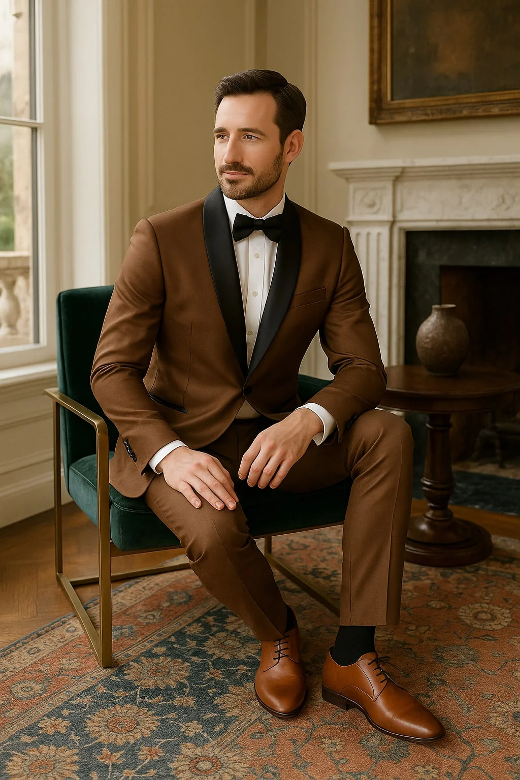 Turn heads and make a lasting impression with this versatile and upscale bronze tuxedo jacket.