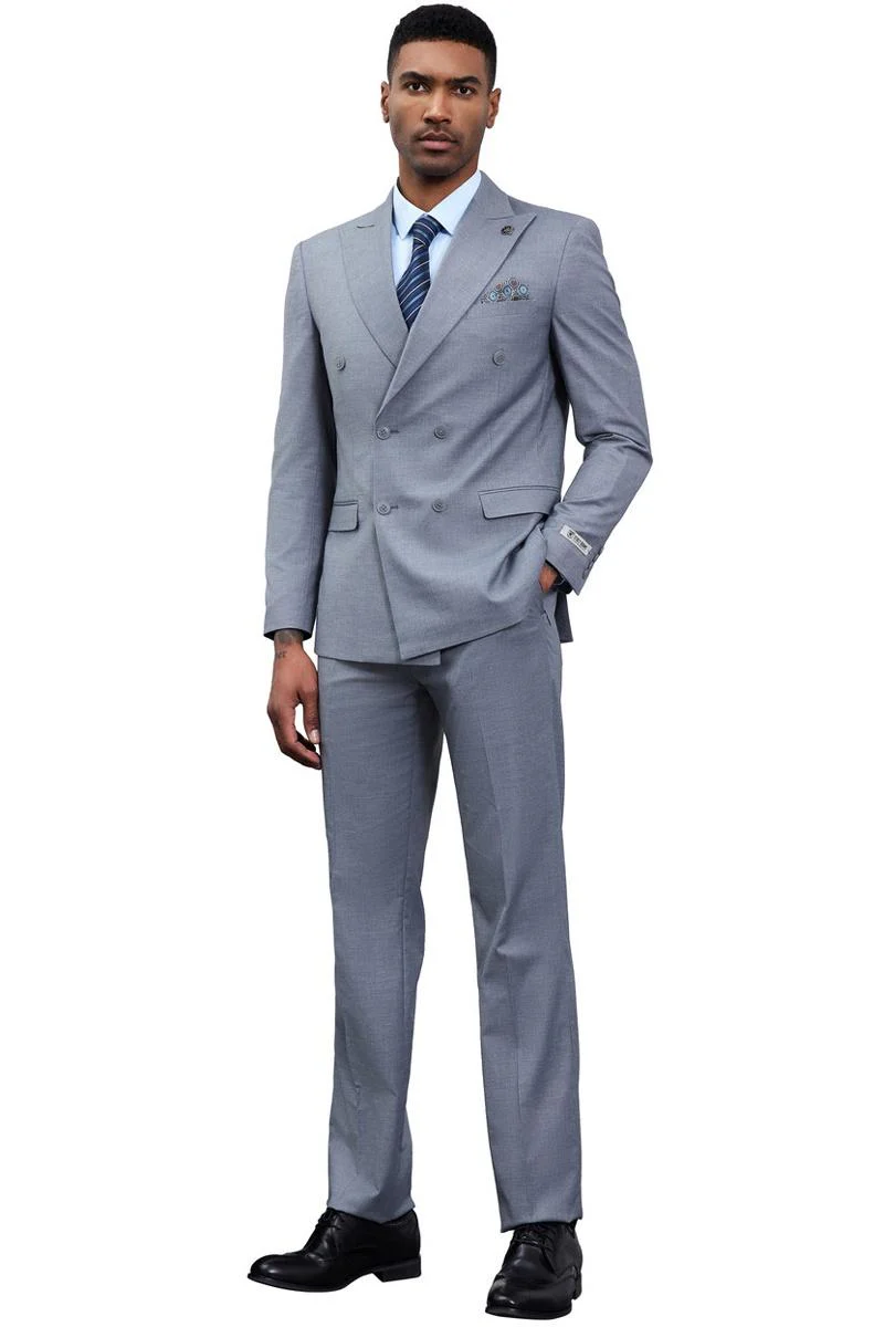 Men's Designer Stacy Adams Classic Double Breasted Suit in Grey
