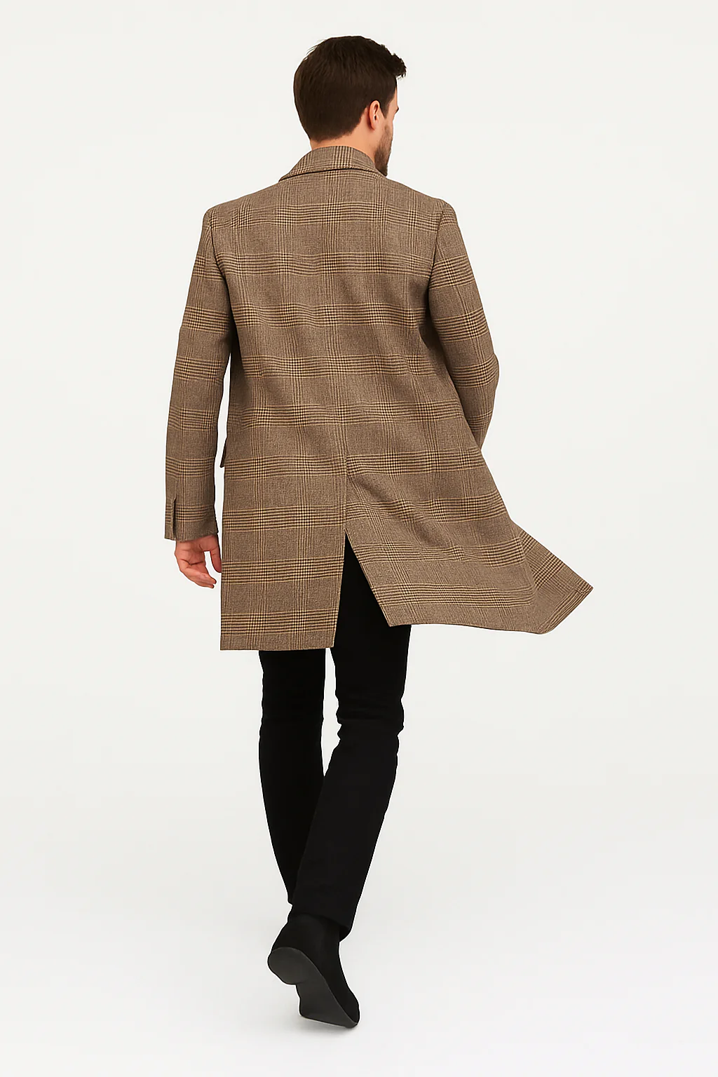 This coat combines British-inspired check styling with contemporary tailoring, making it a standout piece for the colder seasons.
