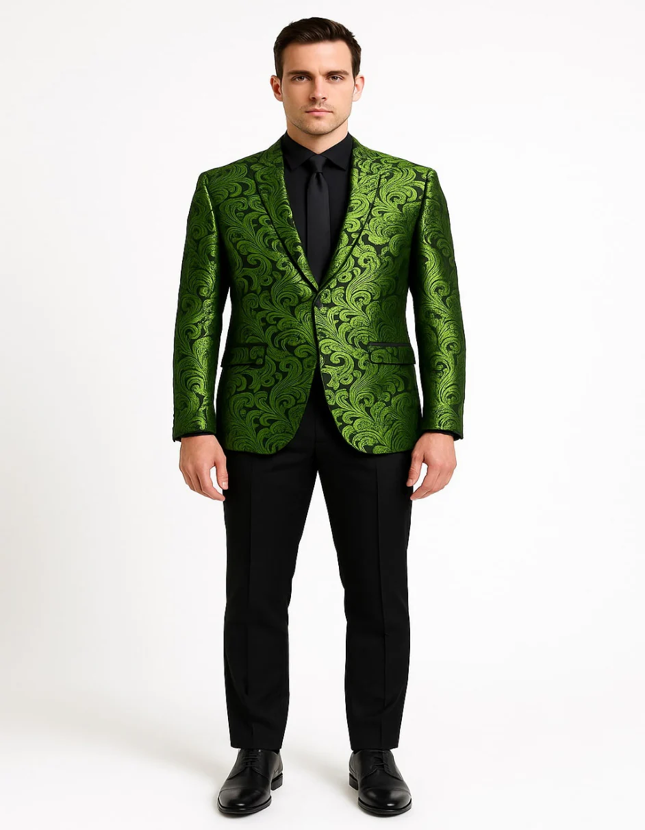 Men's Green Paisley Tuxedo Blazer – Luxury Slim Fit Dinner Jacket for Formal Events