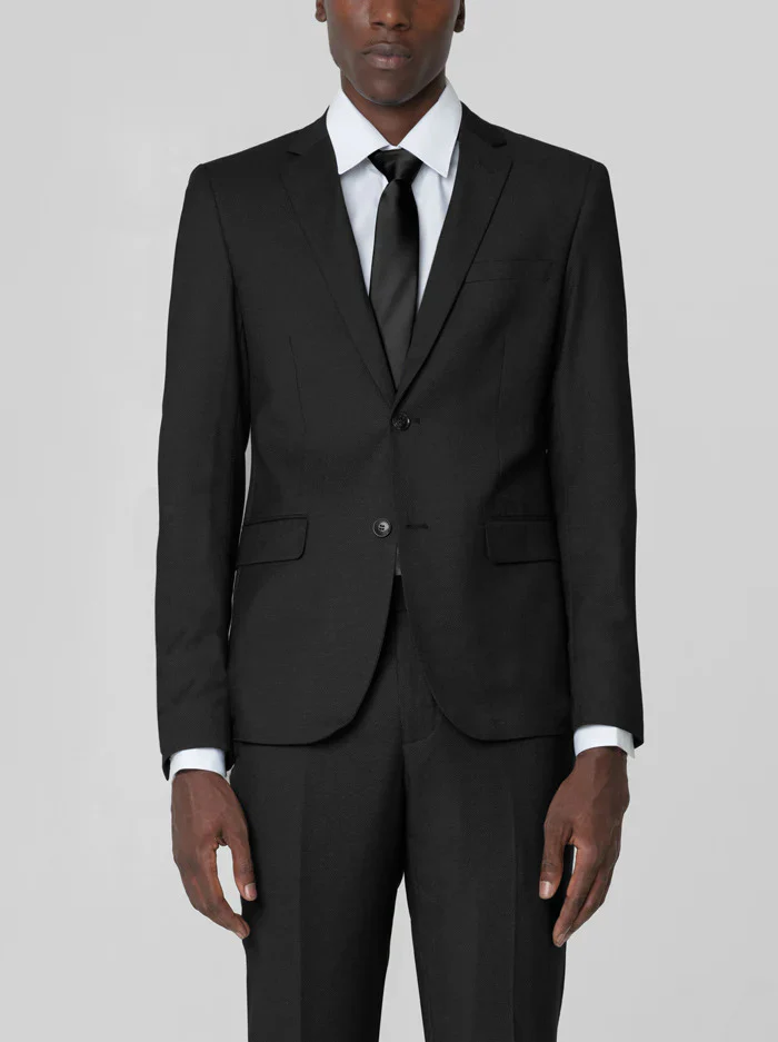 Refine your formal wardrobe with this Black Birdseye Two Button Suit, crafted for men who value sharp tailoring, versatile styling, and subtle texture. The classic black color combined with a sophisticated birdseye weave delivers depth and dimension while maintaining a timeless, professional appearance.