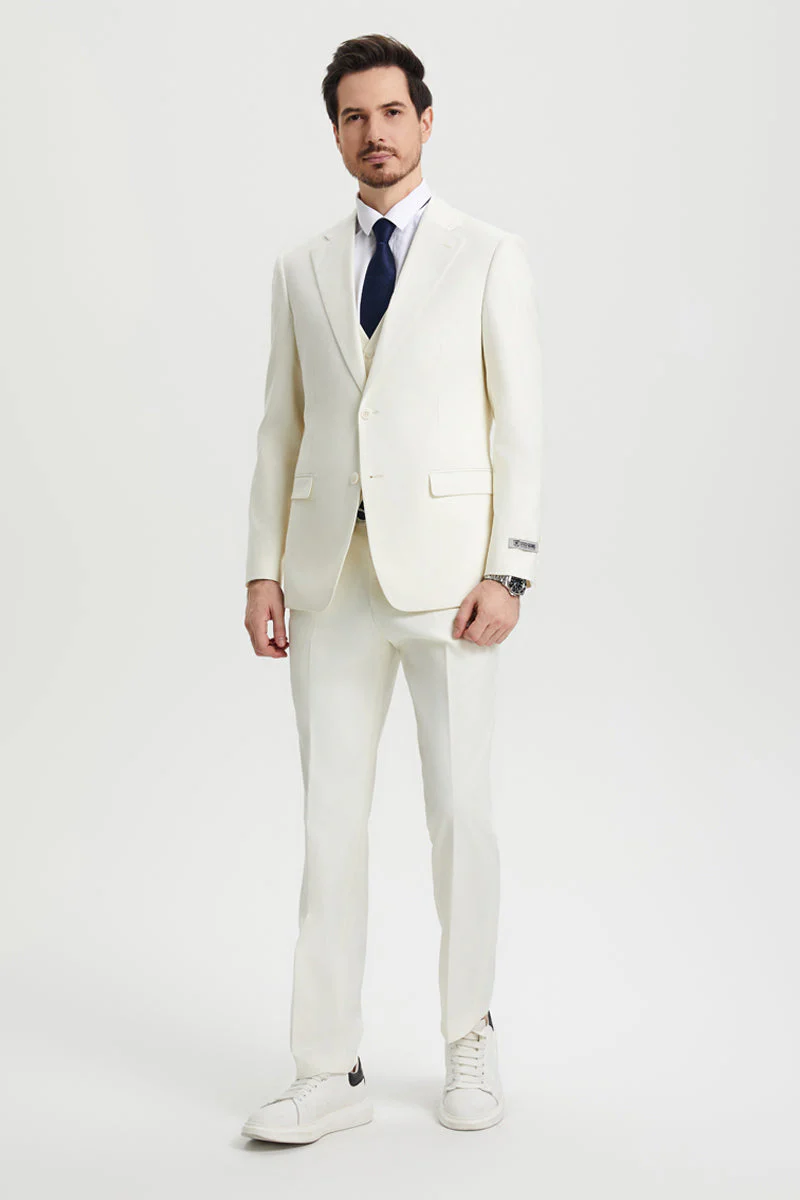 Men's Two Button Vested Stacy Adams Basic Designer Suit in Ivory Off White