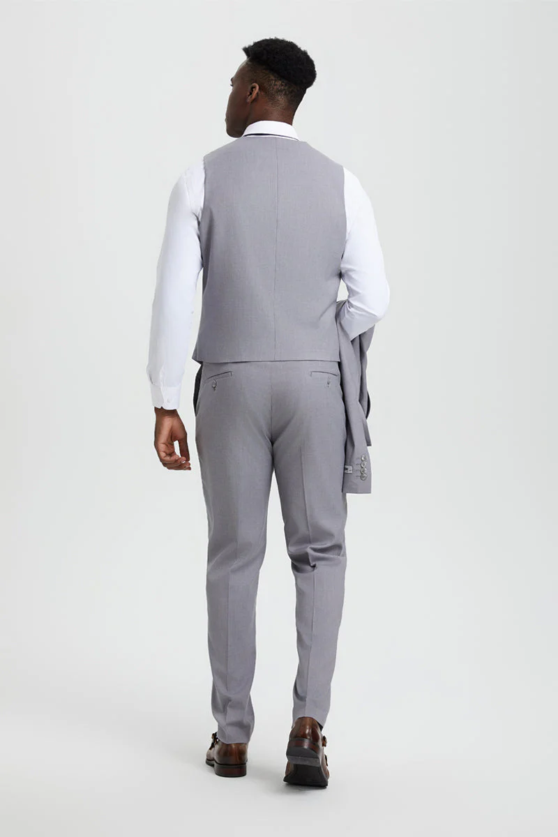 Men's Vested One Button Peak Lapel Stacy Adams Designer Suit in Light Grey