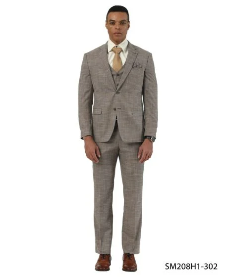 Stacy Adams Men's 3 Piece Hybrid Fit Suit - Crosshatch Pattern