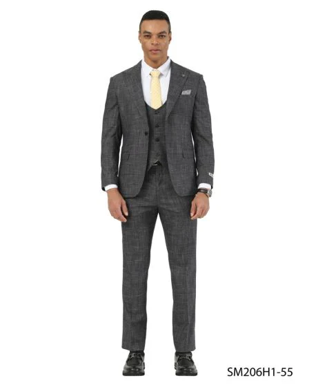 Stacy Adams Men's 3 Piece Hybrid Fit Suit - Textured Windowpane