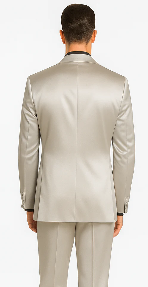 For men who want to stand out with understated elegance, this suit is more than just formal attire—it’s a statement of confidence and impeccable taste. Its sleek silver color and flawless satin finish make it a unique yet classic choice for any high-profile event.