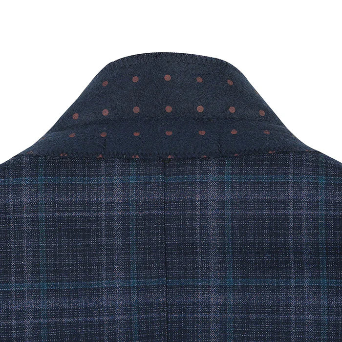 Wool Blend Regular Fit Stretch Checked Blazer in Navy